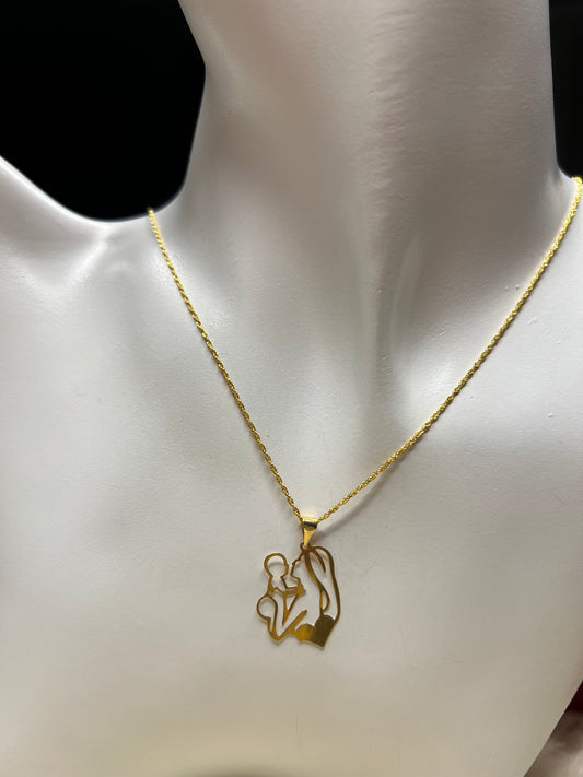 Pure 18ct gold Mother and child necklace