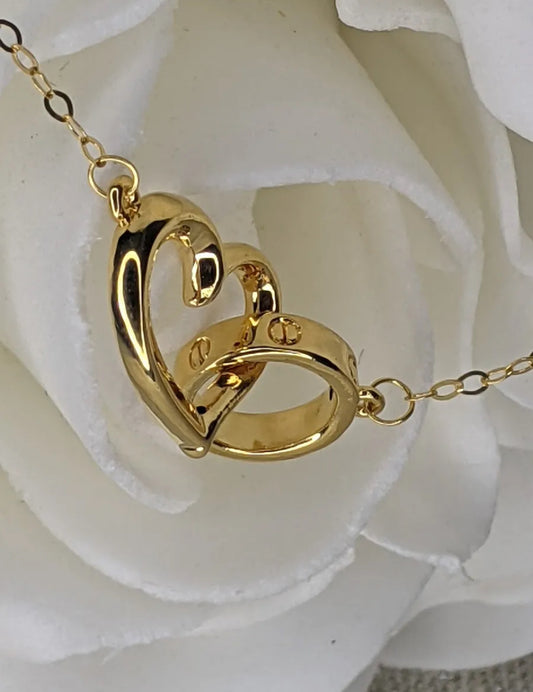 Pure 18ct gold link heart necklace