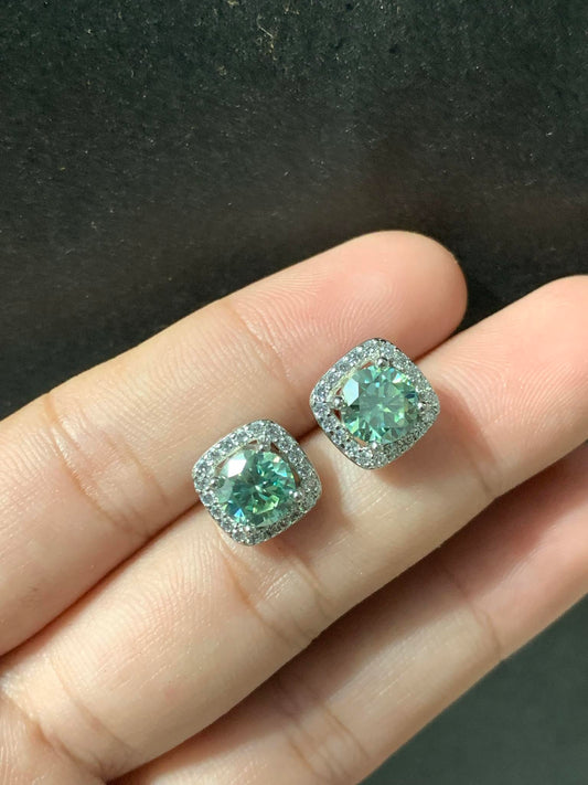 Blue-Green Moissanite Sterling Silver Set