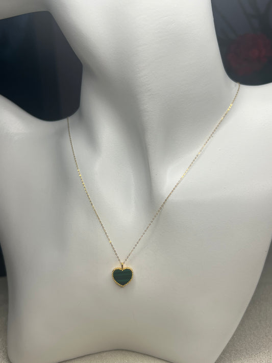 Solid 18ct malachite heart necklace
